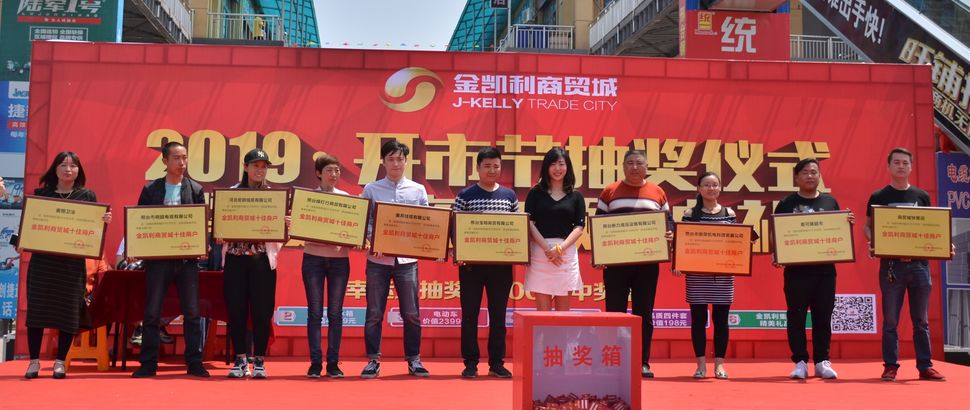 2019年5月4日上午,金凱利商貿(mào)城五金機電市場“2019·開市節(jié)”抽獎儀式暨最佳商戶頒獎典禮于金凱利商貿(mào)城隆重舉行。在市場商戶與各界媒體的共同見證下,黃金大獎、雙開門冰箱、電動車等眾多精美禮品成功送出。