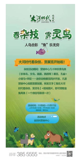 “看萌寵 賞靈鳥”速來大河時代伍號院!